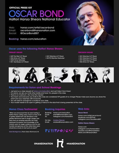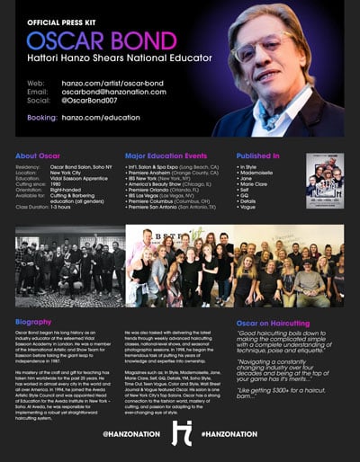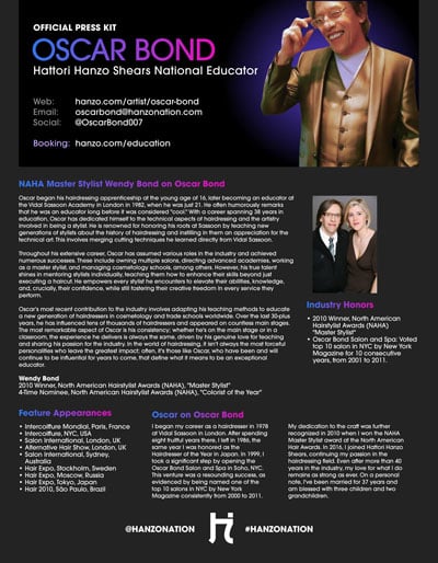 Oscar Bond began his long history as an industry educator at the esteemed Vidal Sassoon Academy in London. He was a member of the International Artistic and Show Team for Sassoon before taking the giant leap to independence in 1987.