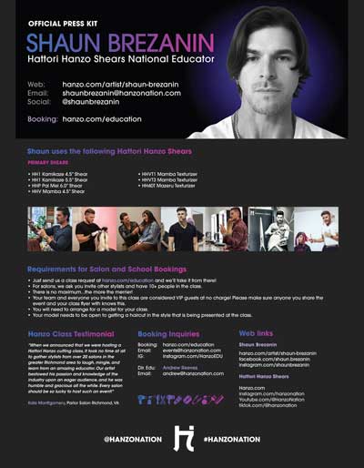 Shaun’s classes are full of new up to trend information. He will expand your skillset and give you the confidence to master any look. Shaun’s haircutting style is a poetic progression of all he has learned.